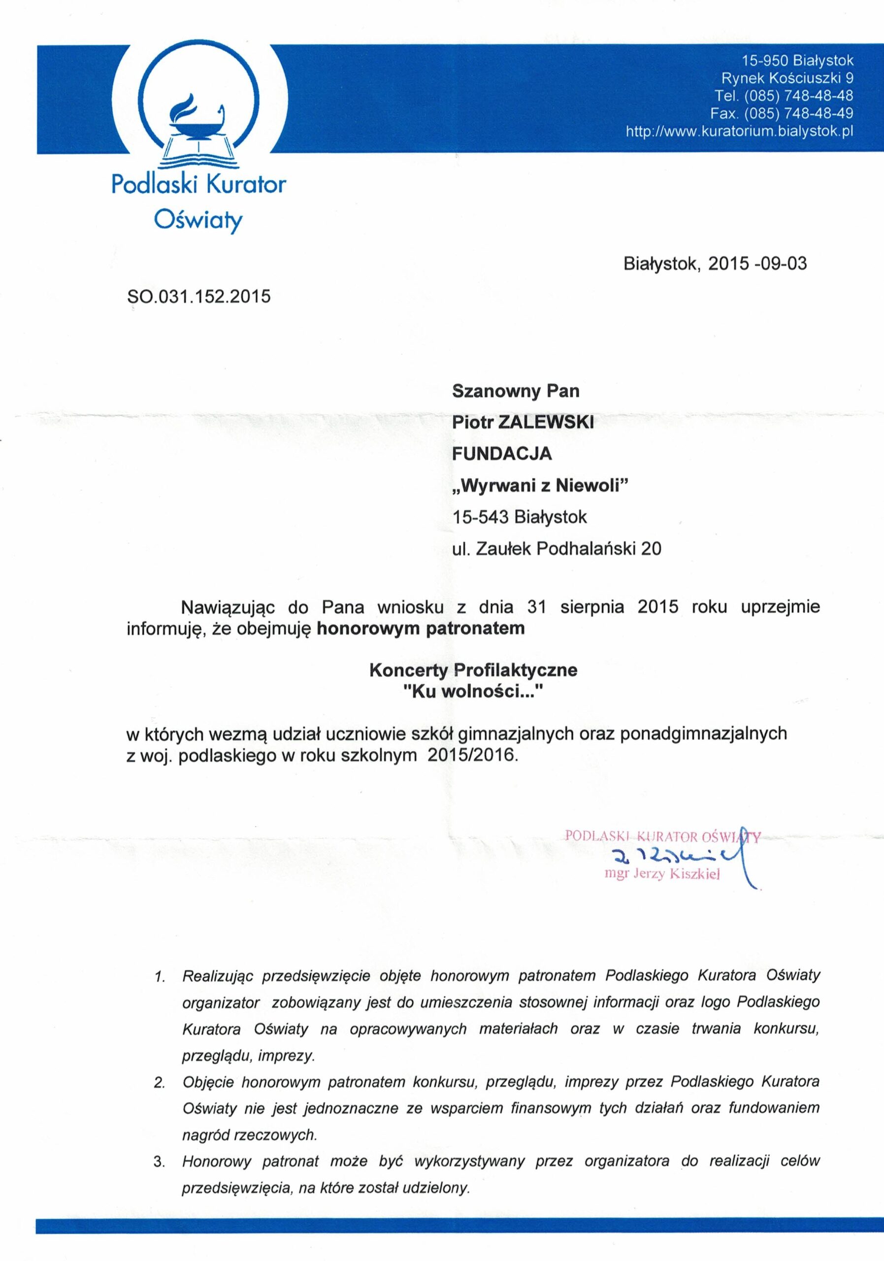 • Patronaty Honorowe: Nasze działania zyskują uznanie na najwyższym szczeblu.