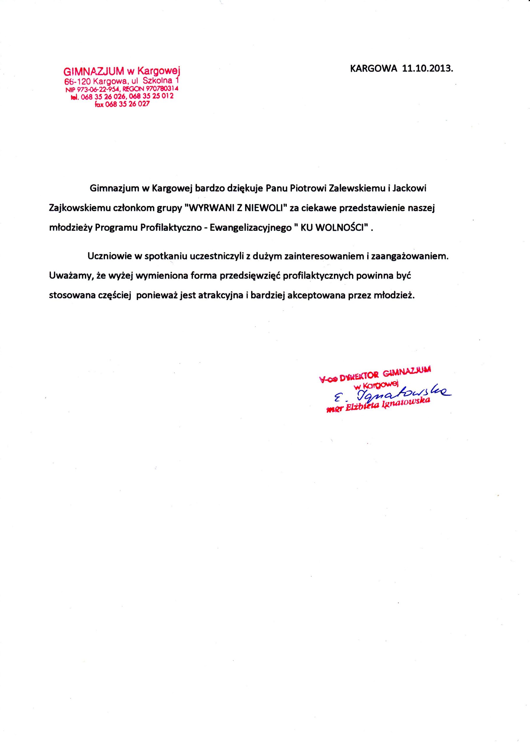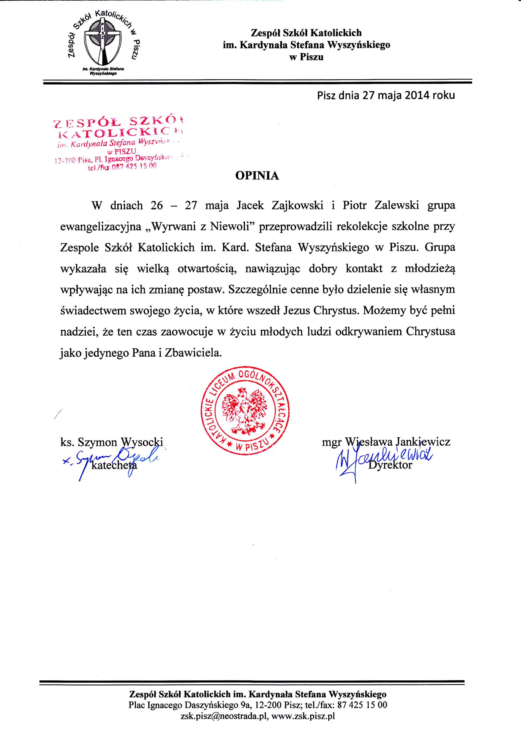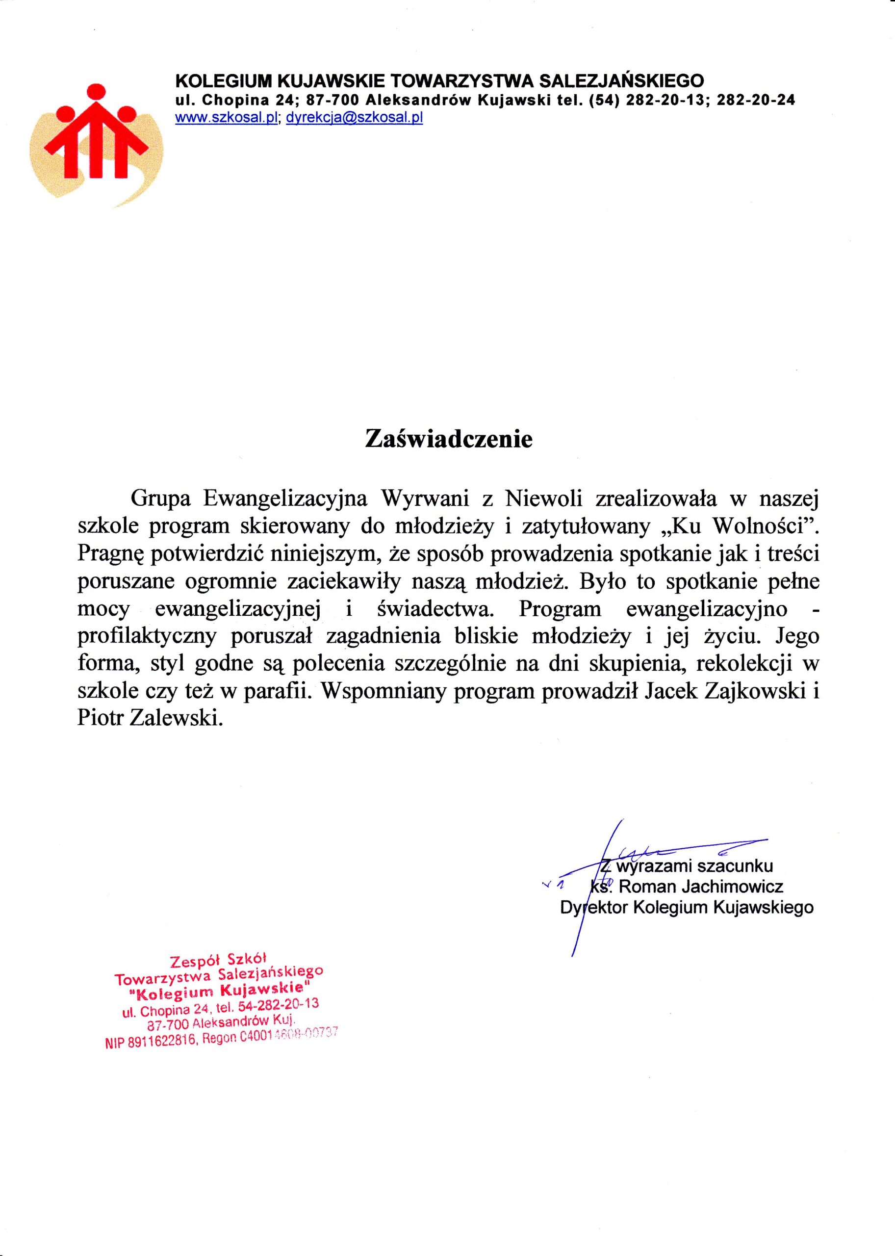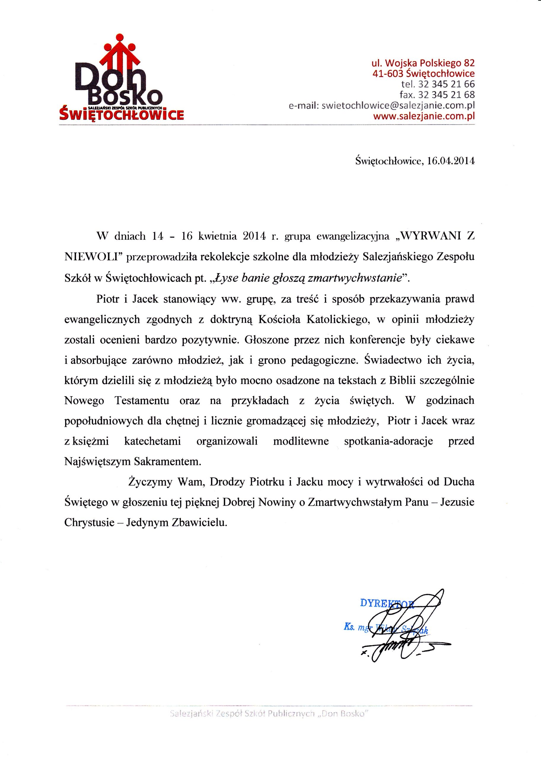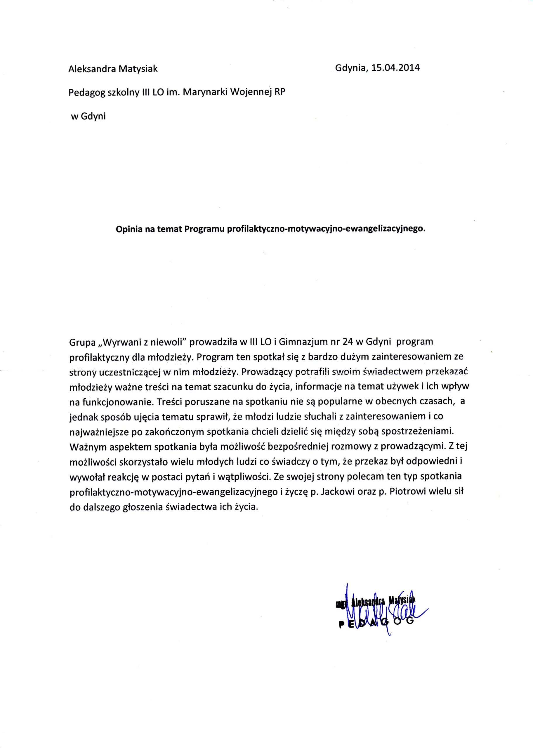 „Program zrealizowany przez Fundację Wyrwani z Niewoli to przełom w naszym podejściu do młodzieży. Profesjonalizm, świetny kontakt z uczniami i głęboki przekaz merytoryczny sprawiają, że to inwestycja w bezpieczną szkołę.”