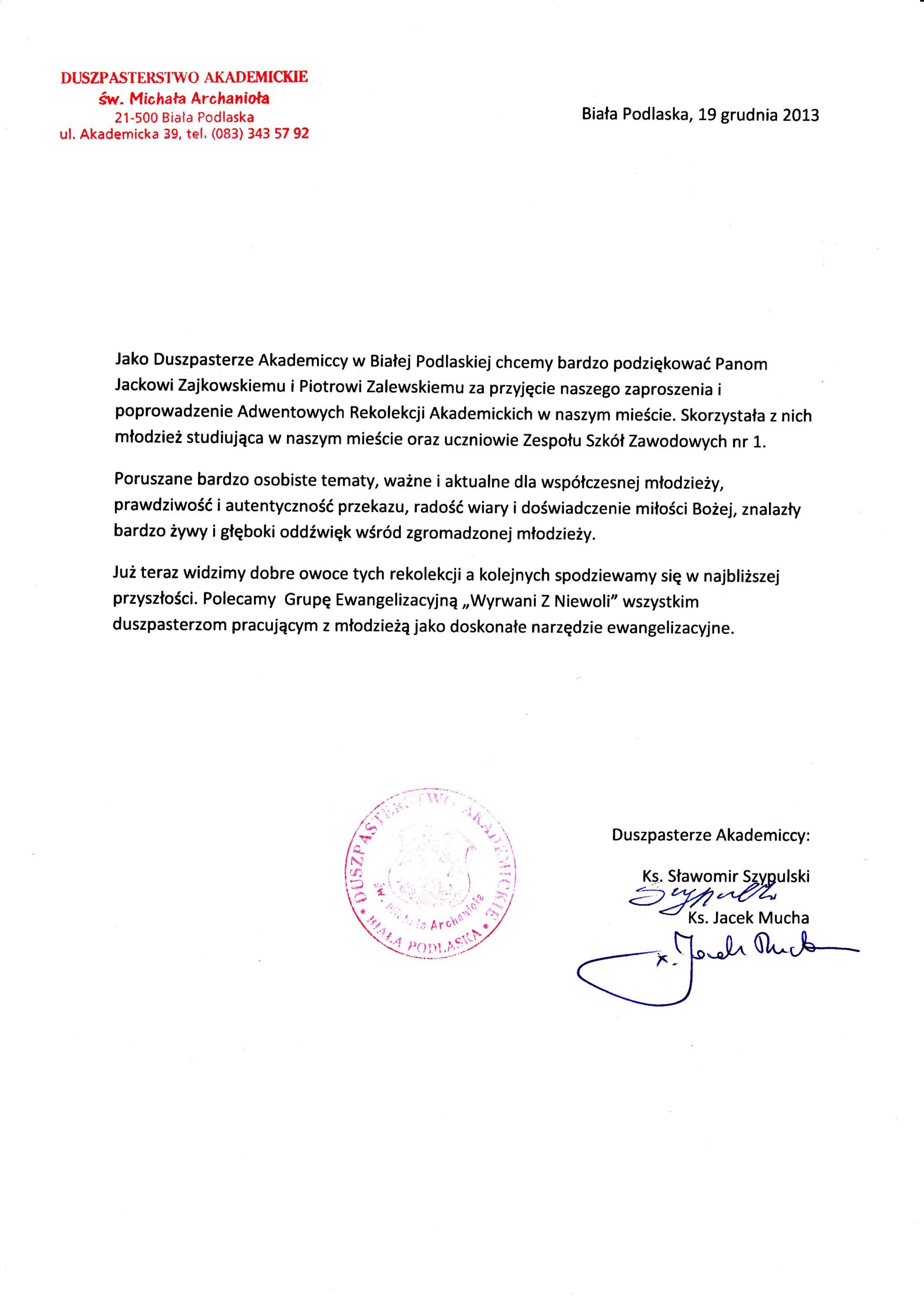 Żadna urzędowa pieczątka nie znaczy tyle, co wiadomość od młodego człowieka, który po naszym koncercie zdecydował się odmienić swoje życie. To dla tych słów Jacek Zajkowski i Piotr Zalewski wychodzą na scenę.